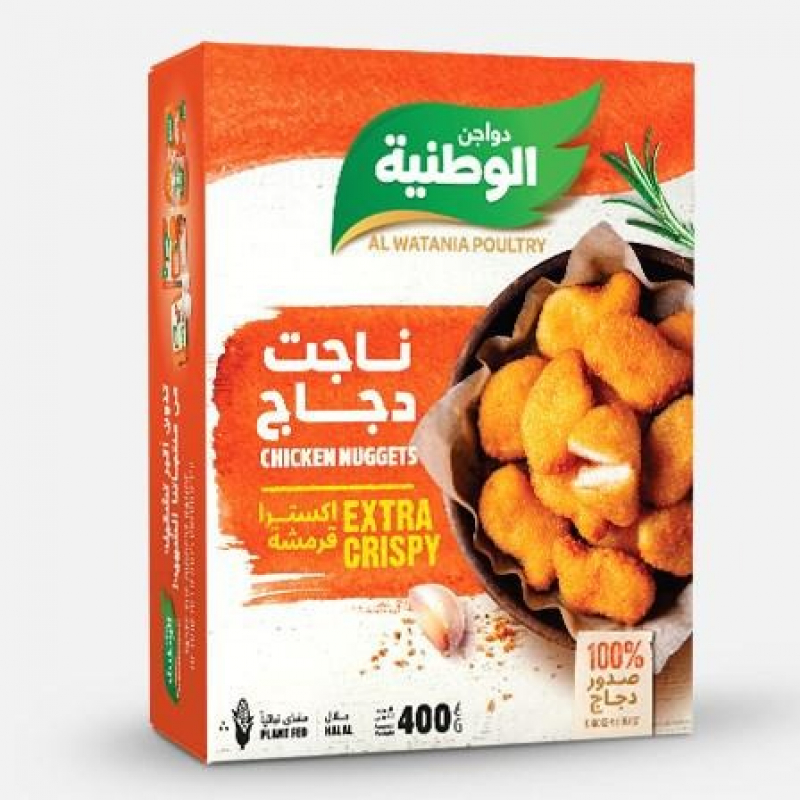 400 grams of quick-cooking chicken nuggets, made from the finest chicken meat naturally fed in our farms and using the finest spices that guarantee you high quality and a distinctive taste. Serve it to your children at any time.