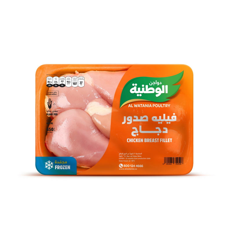450 grams of frozen chicken breast fillets are made from chicken naturally raised at Al Watania Poultry Farms, right through to slaughter. Slaughtered according to Islamic law, they are highly nutritious and air-chilled, ensuring they retain their nutritional value and actual weight. They are cleaned, prepared, and packaged automatically according to the latest international standards.