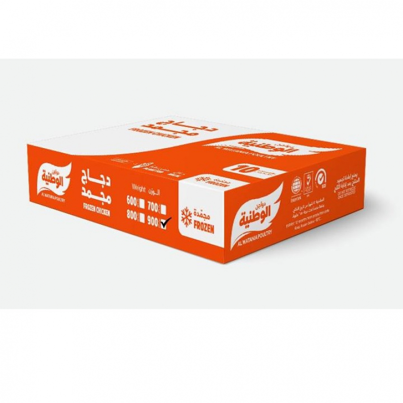 Premium frozen chicken carton, 900g, 10 pieces, naturally nourished throughout its rearing at Al Watania Poultry Farms until slaughter. Slaughtered according to Islamic law, it has a high nutritional value. It is mechanically cleaned and packaged according to the latest international standards.