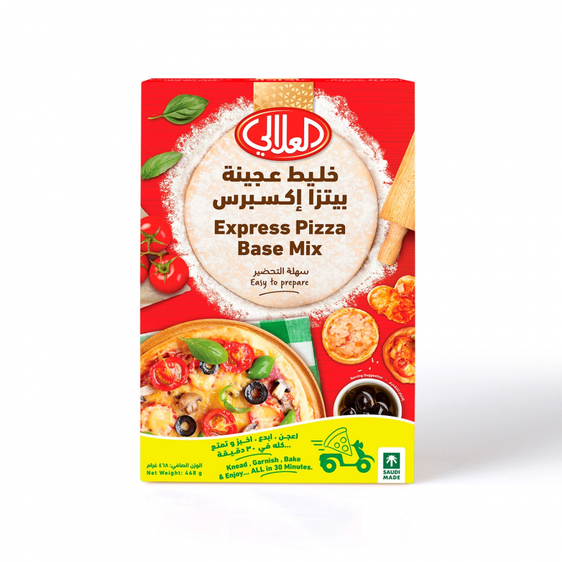 Prepare your pizza faster than the delivery. With Alalali Pizza Express, your pizza will be ready in 30 minutes. All you need to add is water and oil. Then leave the dough to raise for 5 minutes, spread, add Italian pizza sauce, then customize it to your family tase by adding their favorite topping. Finally, bake it for 10-12 minutes.