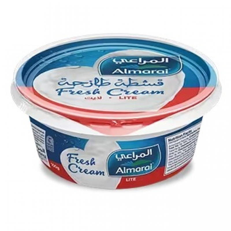 Almarai Fresh Low Fat Cream, prepared from fresh and pure milk cream, sterilized at high temperature.