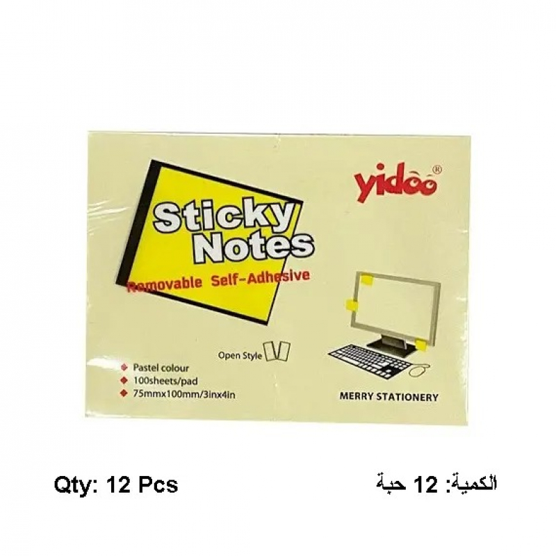 Memo Paper, Sticky Note, (75x100mm), 100 Sheets/pads, Yellow, 12 PC/Pack