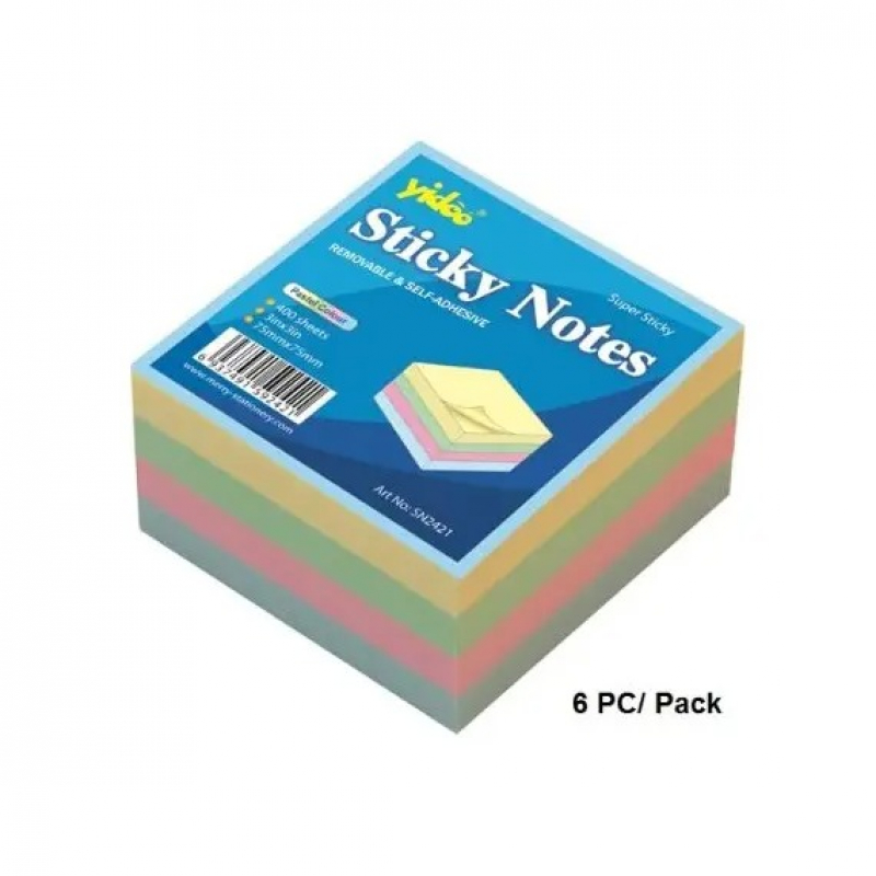 Memo Paper, Sticky Note, (75x75mm), 400 Sheets, 4 Colors, 6 PC/Pack