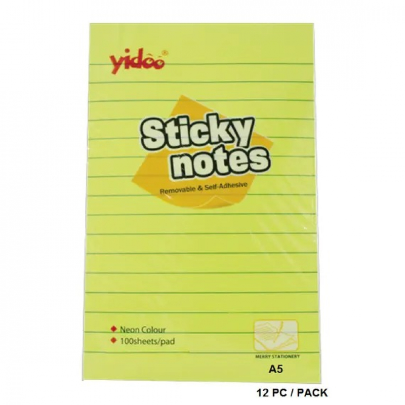 Memo Paper, YIDOO, Lined Sticky Note, (150x200mm) A5, Yellow, 12 PC/Pack