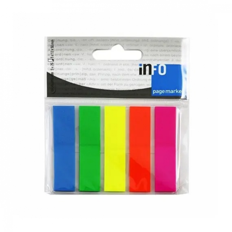 Organize your documents, books, and planners with INFO Sticky Note Page Markers. This pack includes page markers in five vibrant colors, making it easy to categorize and find important information at a glance. Each marker features a strong adhesive that sticks securely to a variety of surfaces and can be removed cleanly without leaving residue.