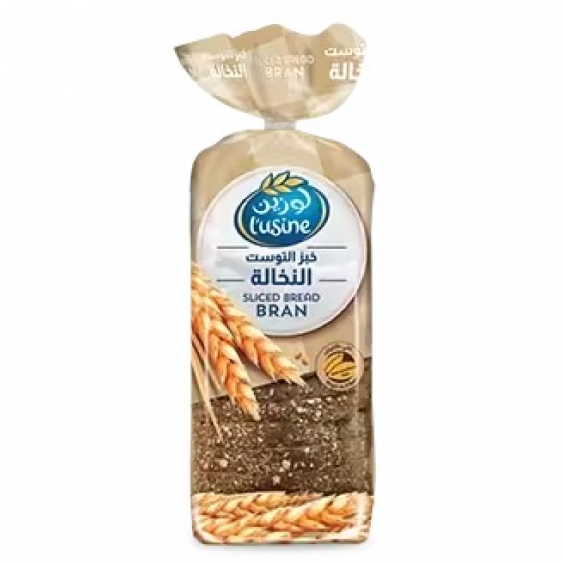 Sliced Bread Bran from Lusine, a delicious bread, and it contains protein and a percentage of dietary fiber.