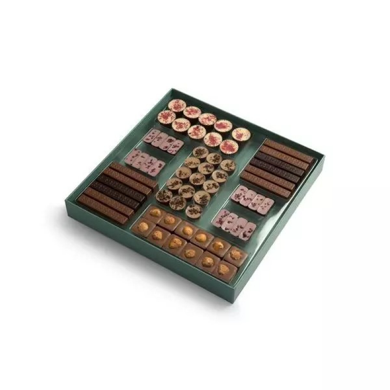 Introducing Les Envies from Patchi, an elegant gift box brimming with delights. Discover a variety of milk and dark chocolates adorned with nuts, fruits, creamy fillings, crispy crêpes, and crisped rice. Indulge in chocolate shells filled with raspberry cream and praliné, alongside batons delights featuring salted caramel and ganache fillings. Perfect for any occasion, these chocolates from Patchi promise a delightful assortment that caters to every palate and celebration.