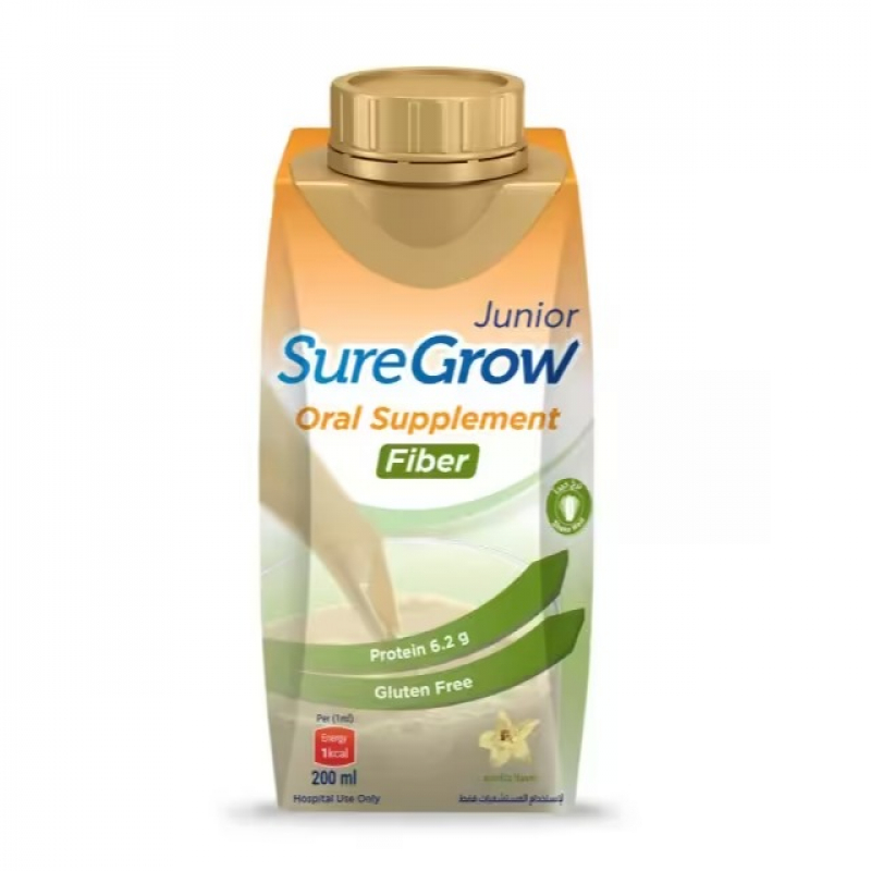 SureGrow Junior Oral Supplement – Fiber is a complete balanced nutrition, suitable as a sole source of nutrition or for supplementation, for the prevention & management of malnutrition & growth failure for children 1 - 14 years old. Fortified with a blend of soluble Fibers for maintaining GIT Health. Advanced Fat blend including DHA & MCT oil.