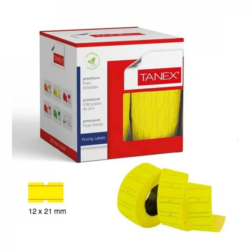Pricing, TANEX, Price label Roll, 2 lines labeller, Yellow Neon, 12 Rolls/pack